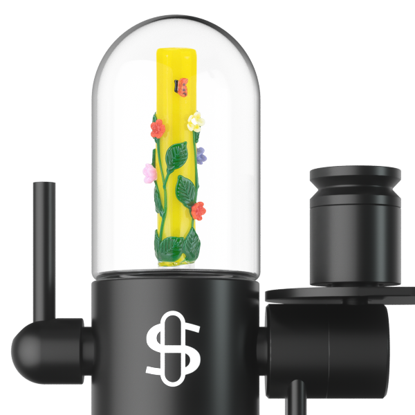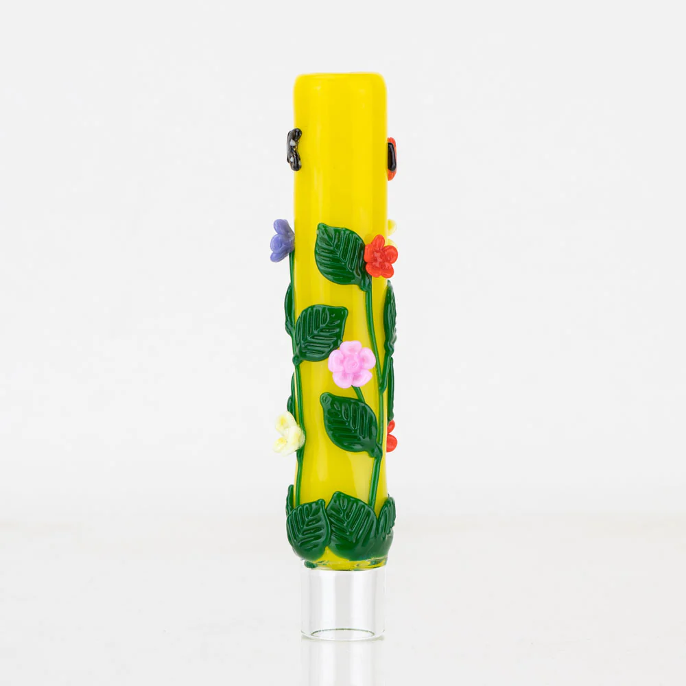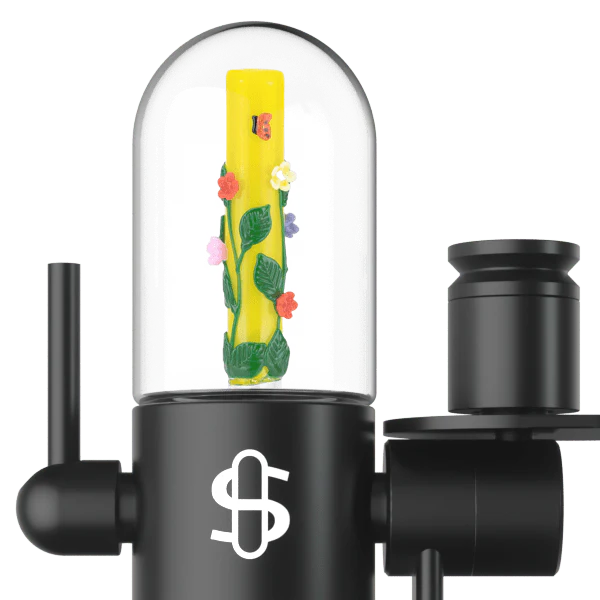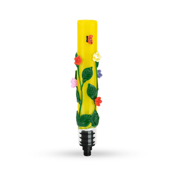 Bring a little sunshine into your life with this "Garden Variety Collection," featuring a beautiful entanglement of lush ivy, vibrant flowers and a red butterfly set against a bright yellow backdrop. Replace your upstem on any full size Stündenglass with this non-percolating Garden Variety stem!