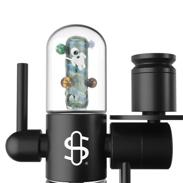 Explore the final frontier in this "Across the Universe Collection," featuring colorful planetary orbs and a glowing astronaut floating across a sparkling dichroic backdrop. Replace your upstem on any Stündenglass Kompact with this percolating Across the Universe stem!
